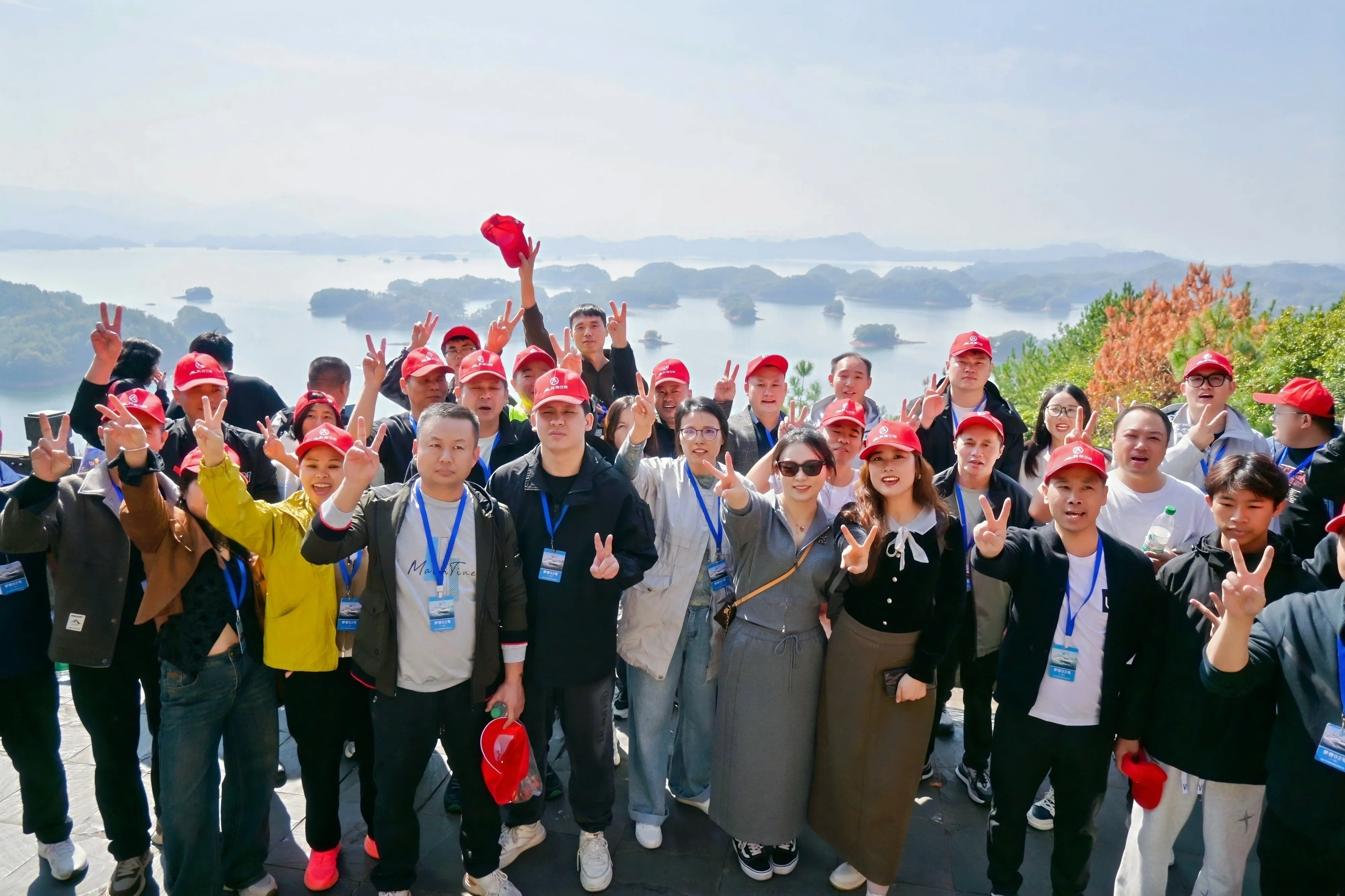 A equipa desfrutou então de um delicioso especialidade local — o famoso Banquete de Cabeça de Peixe do Qiandao Lake , conhecido pela sua carne tenra e sabor rico. Após o banquete, apanhamos o teleférico até ao topo da Meifeng Island , onde mais de 300 ilhas podiam ser vistas de relance. A vista panorâmica era deslumbrante, com cores outonais pintando o lago e as montanhas em tons dourados.