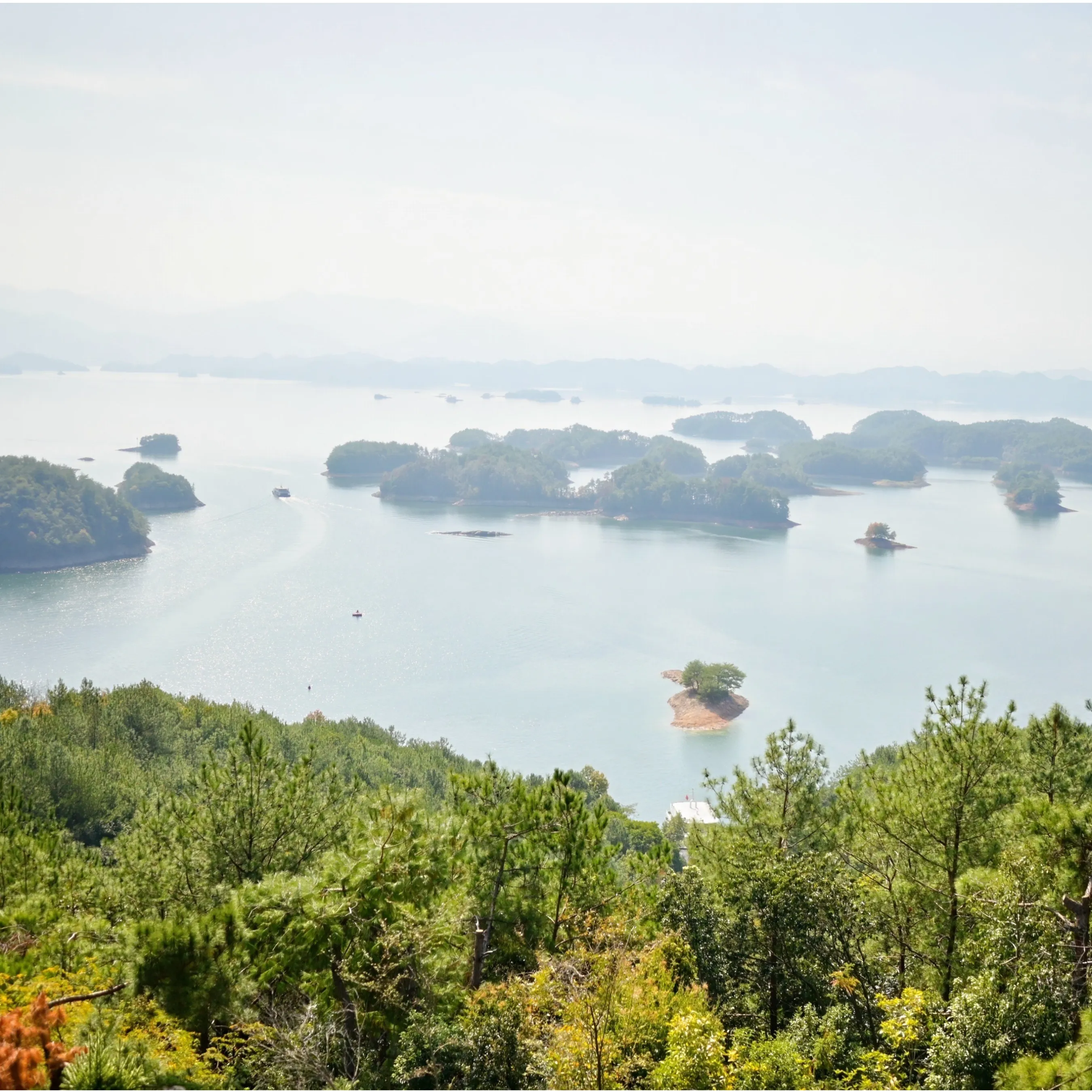 O Qiandao Lake é famoso pela sua água cristalina e mais de mil ilhas únicas . A nossa jornada começou com um cruzeiro panorâmico pelo lago, onde todos admiraram as ondas verdes infinitas e as paisagens pitorescas das ilhas. A vista do barco de turismo foi simplesmente inesquecível — ondulações suaves, céus azuis e risadas preencheram o ar.